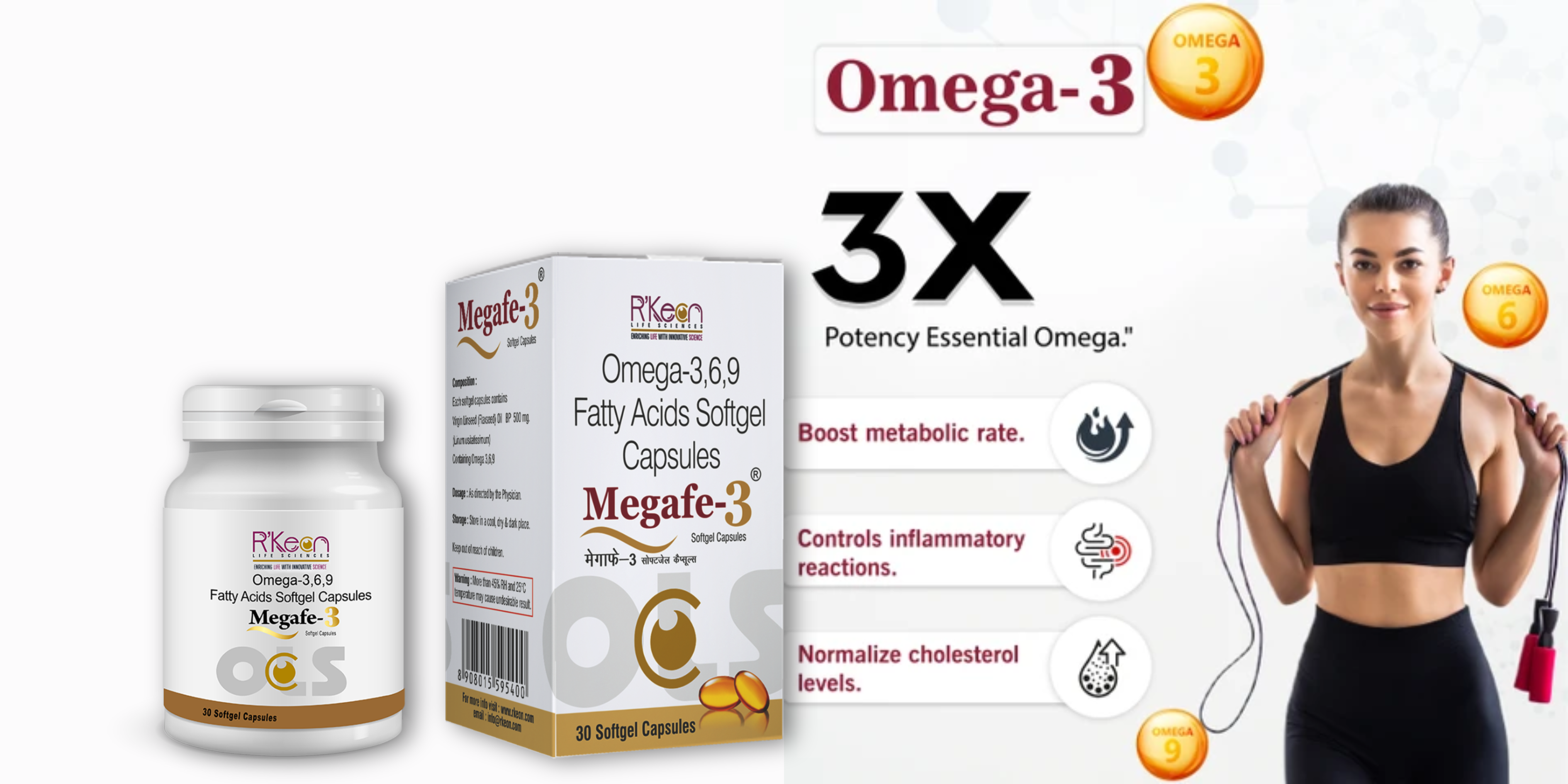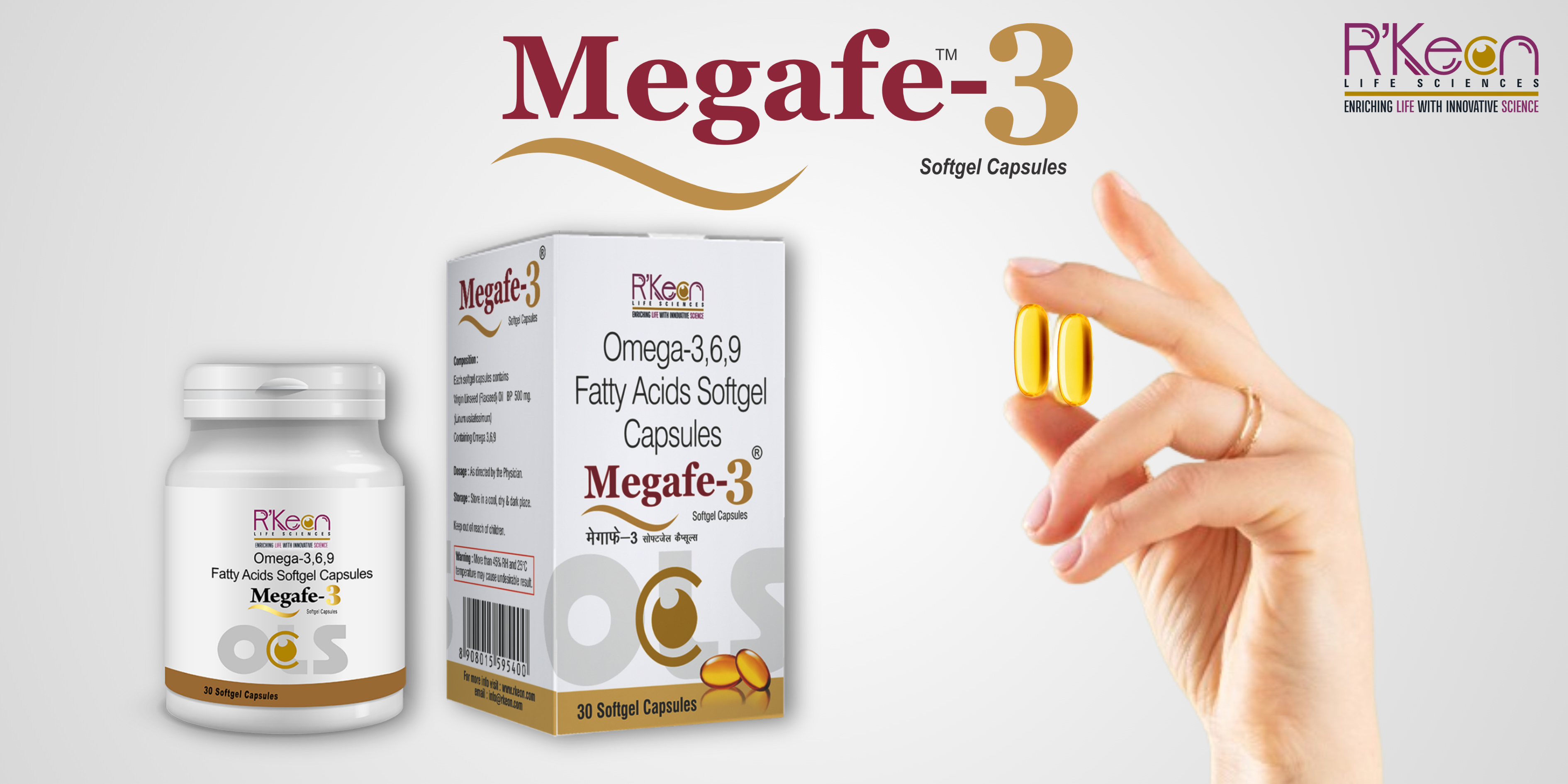R’Keon Megafe 3 Softgel Capsule is a nutritional supplement enriched with Virgin Linseed (Flaxseed) Oil, a natural source of Omega 3, 6 and 9 fatty acids. It is formulated to support not only eye health but also brain, cardiac, joint and digestive functions.