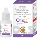 Otriczol Ear Drop comprises three medicines: Chloramphenicol (broad spectrum antibiotics , Beclomethasone (anti-inflammatory) and Clotrimazole (anti-fungal), Glycerin additionally provides moisturizing effect and it also softens the hard wax.